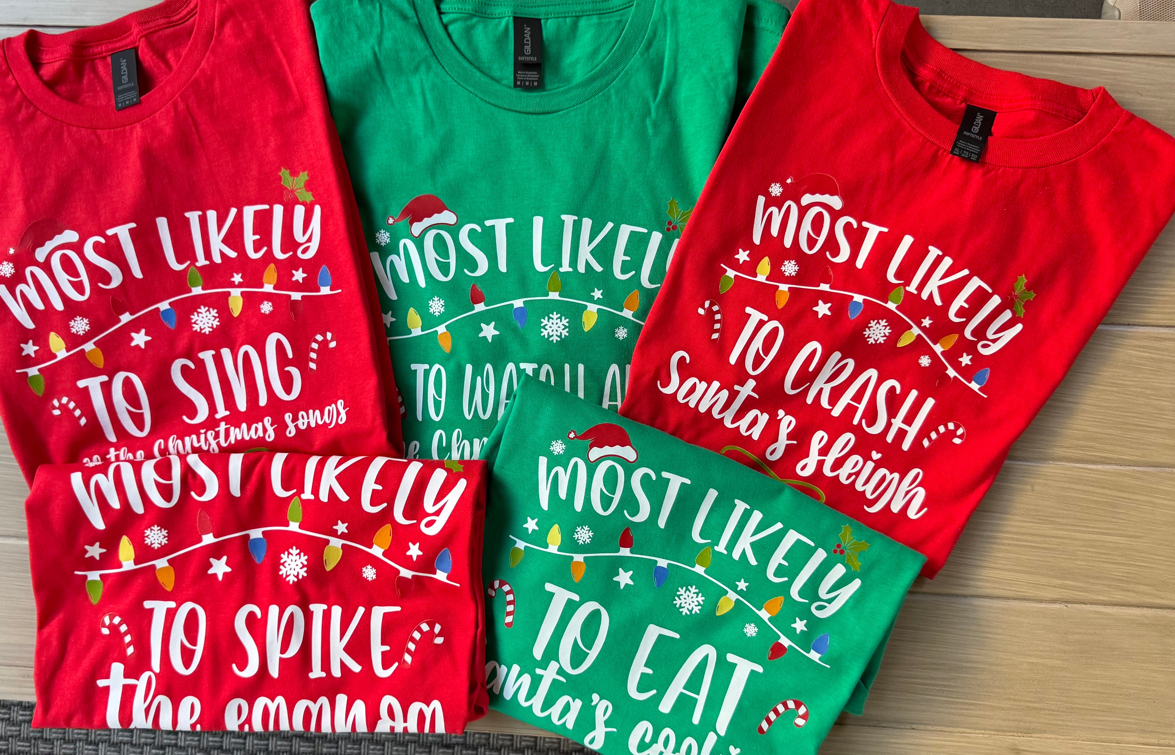 Holiday apparel that includes short and long sleeve T-Shirts, Sweatshirts and Hoodies.